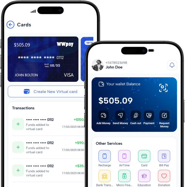 WWpay is a complete cross platform MFS solution designed for users, agents, and merchants. It includes mobile apps, a web platform, an admin panel, and virtual card integration to facilitate seamless financial transactions.